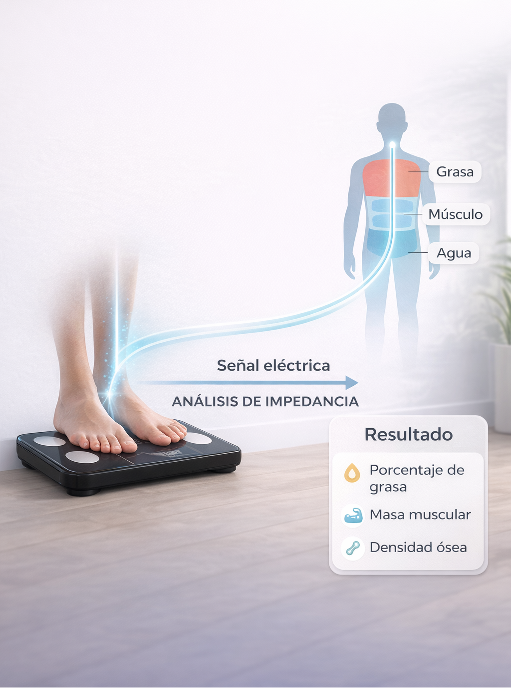 Tal vez ves que el número baja, pero sigues sin saber si estás perdiendo grasa o músculo. Una bascula normal no te lo muestra.